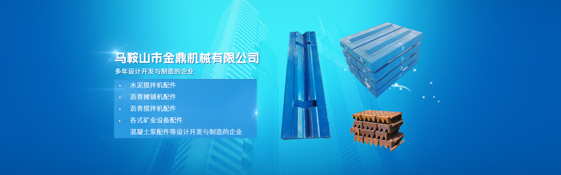 ? 馬鞍山市金鼎機械有限公司位于安徽省馬鞍山市當(dāng)涂縣博望鎮(zhèn)經(jīng)濟開發(fā)區(qū),占地總面積近百畝,是專業(yè)從事水泥攪拌機配件、瀝青攤鋪機配件、瀝青攪拌機配件、各式礦業(yè)設(shè)備配件、混凝土泵配件等設(shè)計開發(fā)與制造的企業(yè)。